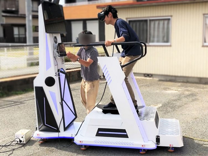 海に行かなくてもサーフィンを楽しめる!「サーフィン体験VR」のご紹介です!VRゴーグルで波の映像に合わせて体を動かし、海の上に浮かぶコインを集めるというゲーム。プレイヤーが見ている映像がモニターに映し出されますので、周囲の人も映像を見て一緒に楽しむことができます。6歳から大人の方まで利用可能です。屋外で設置される場合は必ず、テントか屋根の下などでお願いいたします。