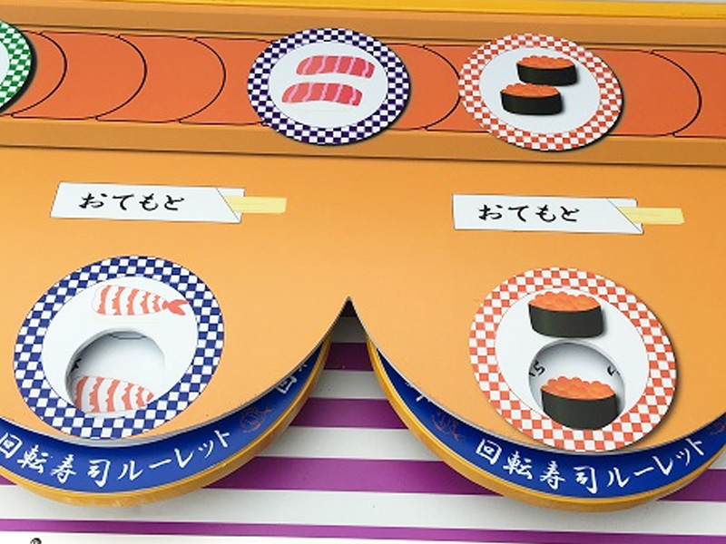 小さなお子さんから、おじいちゃんおばあちゃんまで年齢問わず愛されている日本食の代表、お寿司!こちらの「お寿司スロットゲーム」の遊び方は、ルーレットを回し、それぞれのお皿に描かれているお寿司と同じ絵柄が揃えば成功という、単純明快なゲーム!揃えた数により、ちょっとした景品を用意しても面白いですね。日本ではもちろん、外国の方にも喜んでもらえるゲームです!