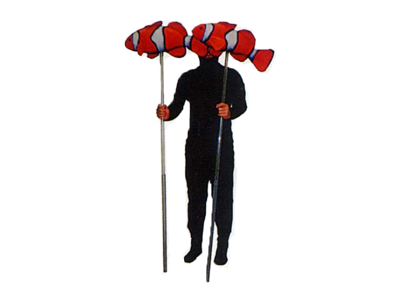 黒子姿で魚役を熱演!?「魚役コスチューム」のご紹介です!こちらの商品は黒子にふんした人が棒の付いた魚を持ち、自由に魚を泳がすことができます。幼稚園でのお遊戯会や、舞台で海の中の様子を演出したり、水族館やお魚にちなんだイベントにいかがでしょうか!ご入用の際は、お気軽にお問い合わせください。
