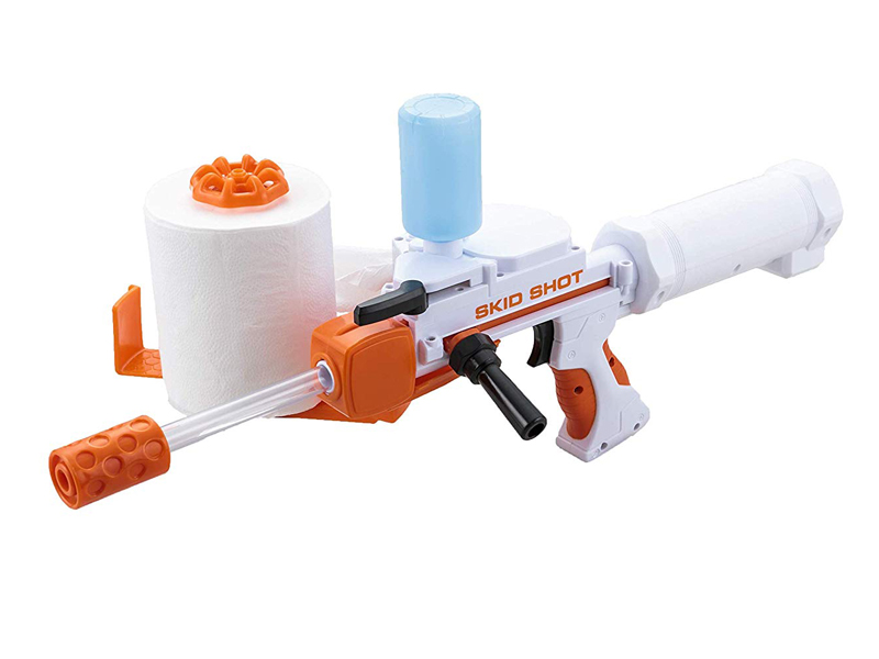 家庭用のトイレットペーパーが弾丸になる!なんともユニークな「ロールペーパーブラスター」のご紹介です!こちらの商品は、トイレットペーパーに水分を加え、エアで圧縮して弾にし、発射する子供用のトイガンになります。1ロールで約650発の弾を発射でき、最長飛距離はなんと9m!当たっても痛くありません。さっと拭き取るだけで後片付けも簡単!安心安全に遊んでいただけます。今まで見たことのない、新たで斬新な玩具です!