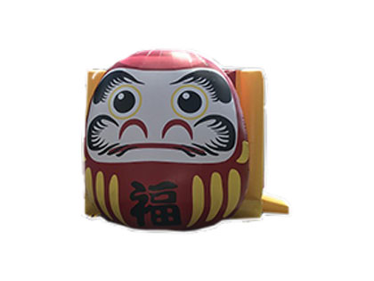 大きな大きなだるまがインパクト抜群!「だるまエアーバウンス」のご紹介です!高さが3m以上もあるだるまは、遠くからでもとにかく目立ちます。お祝い事や縁起物でも親しまれるだるまは、とてもめでたい印象ですね。中では同時に8人遊んでいただけるサイズで、メッシュ窓が付いていますので、中での楽しそうなお子さんの様子もご覧になれます。周年祭やお祝いのイベントにいかがでしょうか!