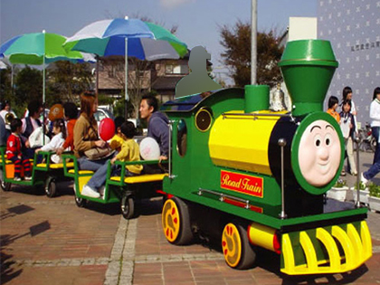 線路は無し!会場を自由に走行できる「シャボン玉機関車」のご利用はいかがでしょうか!こちらの商品の魅力は、楽し気な音楽と共に、煙突からシャボン玉を吹き出しながら走行できることです。乗車している方のみならず、周りの方も楽しい気分にさせてくれます。3両編成で、最大12名までの乗車が可能です。ご利用の際はお気軽にご相談ください!
