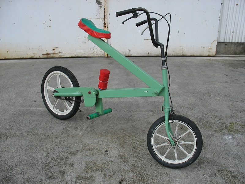 サドルを上下させて進む「バッタ自転車」のご紹介です!こちらの自転車は、足で漕ぐのではなく、九の字に曲がったサドルを上下し、跳ねる力を使い進みます。弊社には、二人漕ぎ三輪車やスニーカー型自転車、バギー風自転車なども扱っておりますので、おもしろ自転車のイベントなどに是非お役立てください!ご利用をお待ちしております。