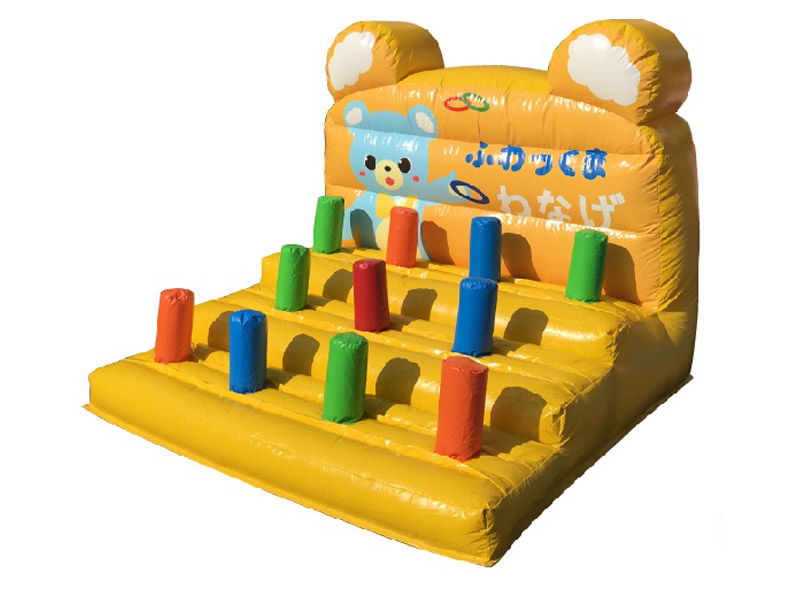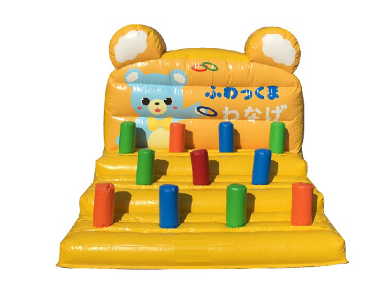 カラフルな色使い!可愛いくまちゃんのキャラに首ったけ!「キッズ向け大型輪投げ」のご紹介です。幅と奥行きが2m以上あるこちらの大きな輪投げ。ボリュームがあるので設置するだけでも存在感は抜群です。可愛いキャラと、見ただけでワクワクしちゃうデザインにお子さんも釘付け間違いなし!お祭り関係のイベントはもちろん、集客イベントや宣伝活動にもオススメです。