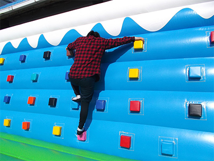 落ちても痛くない!カラフルなブロックを掴んで最後まで渡り切れるか!?「子供向けボルダリング」のご紹介です。こちらの商品、幅は11m以上ありますが、高さは3m程なのでお子さんにもやさしく、チャレンジしやすいものとなっております。お子さんが、ボルダリングに興味を持たれる、よいきっかけになるかもしれませんね!スポーツイベントや文化祭、子供向けのお祭りにぜひいかがでしょうか!