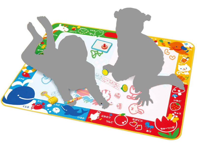 何度でも繰り返しお絵描きができる!「らくがき用シート」のご紹介です。シート上に水を入れた専用ペンでお絵描きすると、発色します。乾くと描いたものは消えますので、何度でも繰り返し使えて経済的。水で描きますので、床にはみ出しても汚すことがありません。使わない時はシートを折りたたんで置いておけます。描くことが大好きなお子様にも、床や服のへの汚れを気にしなくていい保護者の方にも嬉しい商品です!