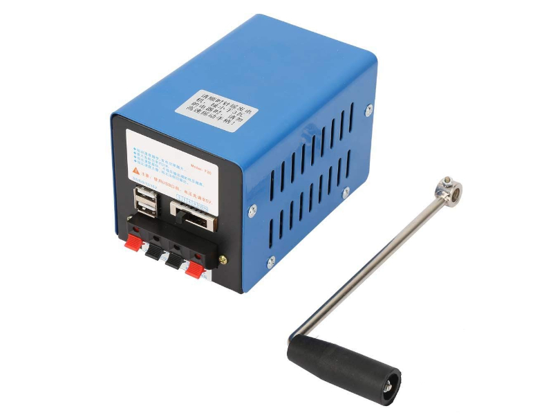 手回し式充電器は、その名の通り手回しで電力供給ができる充電器です。商品名は充電器とありますが、発電機としてもお使いいただけます。サイズもコンパクトで、アウトドア等で持ち運ぶ時も楽々です!手回しによる充電はもちろん、USBケーブルを介しての充電もできるので、手回しするのに疲れた時でも問題ありません。キャンプや車中泊、また災害など電力供給ができないような場所でもスマートフォンの充電をしたり、パソコンを使いたい時に便利ですので、どうぞご活用下さい。