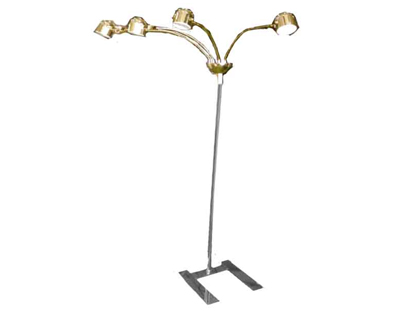 LEDライトが4つあり、枝のように見えて、見た目がオシャレなジュエリースポットライトのご紹介です。高さが約2.3mありますので、上からしっかりと照らすことができます。作品や装飾品を照らす際にオススメです。展示会や作品展などで商品を照らす際に是非、ジュエリースポットライト使われてみてはいかがでしょうか。お問い合わせをお待ちしております。