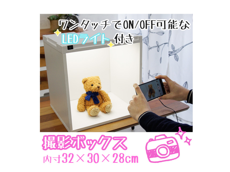 天候や時間に左右されず美しい写真が撮影できる「ライト付き撮影BOX」のご紹介です!要らなくなった物をネットオークションで売ったり、手作りしたハンドメイド雑貨やアクセサリーを、ネット上で紹介したり販売したい時に必ず商品の写真が必要です。その写真ひとつで、売上や落札価格が違ってきます。より魅力的に、お客様の興味を引く写真を撮影するために、こちらの商品を是非ご利用ください。LEDライト付で、天気や時間帯による光の加減に邪魔されることなく安定した写真が撮れます。アクセサリーや小物の撮影に適したサイズ感です。ご入用の際は、お気軽にお問い合わせください!