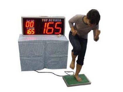 制限時間内にどれだけステップを踏めるか、体力勝負のステッピングゲーム レンタルのご紹介です。お子様も大人も楽しめるゲームです。遊び方は、パッドの上で思いっきりダッシュするだけで、足がパッドについた数が電光掲示板に表示されます。ハイスコアを出そうとムキになってしまう体を使って遊べる単純なゲームです。