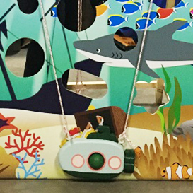 文化祭や子供まつり、町内会のイベントなどに潜水艦操縦ゲームをご利用になりませんか?真ん中にボールがセットされた潜水艦を、左右の手でバランスを取りながら引っ張り上げ、ゴールの穴に見事落とす事ができれば成功!途中、待ちうけるサメやタコのそばには落とし穴がいっぱい!ボールを維持したままゴールできるか、プレイヤーもギャラリーもドキドキしちゃいますね。電源不要のゲームになりますので、場所を選ばずどこでもご利用可能です!