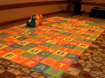 小さいお子様や、乳幼児連れのご家族が多く参加されるイベントなどで、大変重宝される英語マットのご紹介です。小さなお子さんを抱えたお母様にとって、安全に遊ばせる事のできるキッズスペースは、とても有難いものです。また、こちらは単なるジョイントマットではなく、カラフルな色目に、また違った色のアルファベットの組み合わせになっており、お子さんの視覚を刺激します。並んだアルファベットを指差し、「これは何かな」、「Aを探してみようか」など遊びながらの学習も楽しいですね!