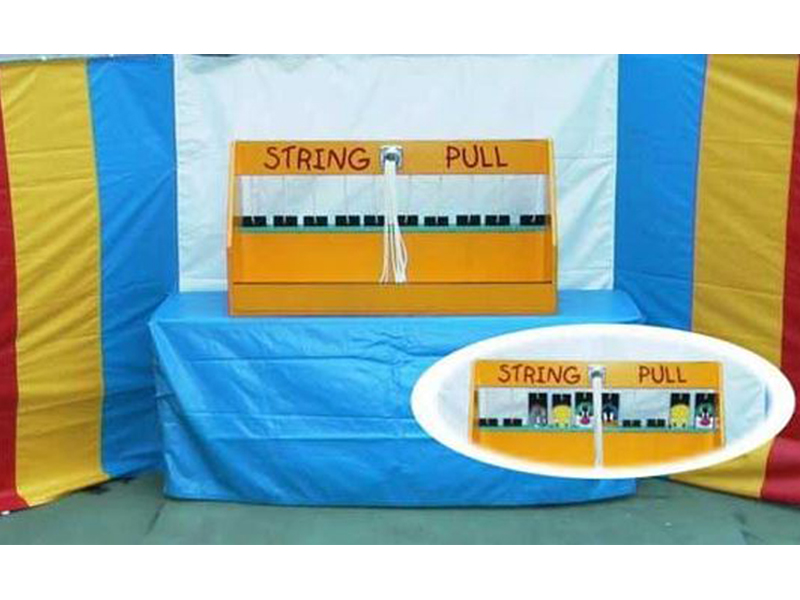 絵合わせ神経衰弱のご紹介です。ルールはとても簡単、10枚並べられているパネルの絵柄を揃えてもらうだけです。たくさんある紐のうち、どれかが紐を引っ張るとパネルが起き上がるようになっています。見事に同じ絵柄を揃えることができれば、お菓子などの景品が貰える、というのがあれば子供たちも喜ぶと思います。縁日やお祭りの時に是非いかがでしょうか。