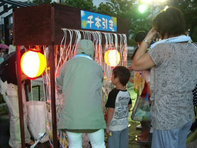 ロープの先に景品をくくっておき、1本ずつ引いていただき、釣り上がった景品を持ち帰っていただく、簡単なゲームです。