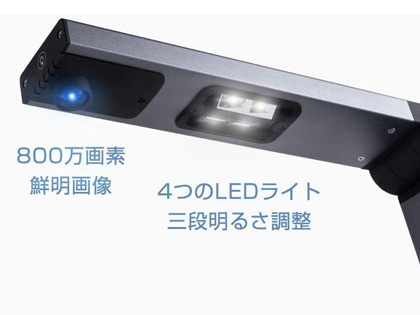 800万画素の解像度、A3サイズ以内のすべてのファイルをスキャンできるOCRつき書画カメラです! 三段階に明るさが調整可能な4つのLEDライトで、暗闇でも安心スキャン! 連射モードを使えばスキャンのたびにボタンを押す必要がなく、大量の書類を効率よくスキャンできます。 OCR文字認識技術でスキャンした画像の文字は、テキストデータとして取り込むことも可能。取り込んだデータはワードやテキスト、PDFといった様々なフォーマットを出力出来ます。 平面補正、下塗り削除、スキャン画像の合成といった便利機能もワンクリックで処理可能。 OCRつき書画カメラで大量の書類を簡単にデータ化出来ますよ!