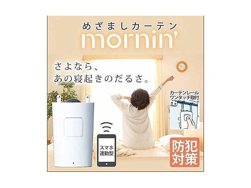 スマートフォンと連動してカーテンを開閉させられる、めざましカーテンのご紹介です。使い方はまずカーテンの端のフックを外して本機を取り付け、専用のアプリを入れたスマートフォンと連動させ、あとは本機を覆うようにカーテンのフックを戻せば設置完了です!開閉はスマートフォンでできる他、スマートフォンがなくても時間を設定するこ とで指定した時間に自動でカーテンが開くといったモードなどもあります。朝の目覚めをスッキリさせるのはもちろん、防犯対策にも役立つので、是非いかがでしょうか。