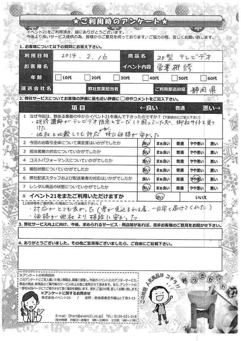2014年2月にご利用いただいた、静岡県のお客様より。