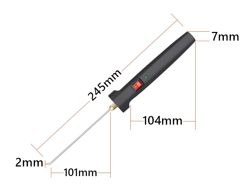全長:245mm グリップ部分:直径 7×長 104mm ヒーター管:直径 2×長 101mm |
