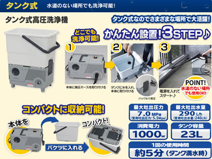タンクタイプ高圧洗浄機 レンタルご紹介ページです。東京、大阪をはじめ全国に配送が可能です!