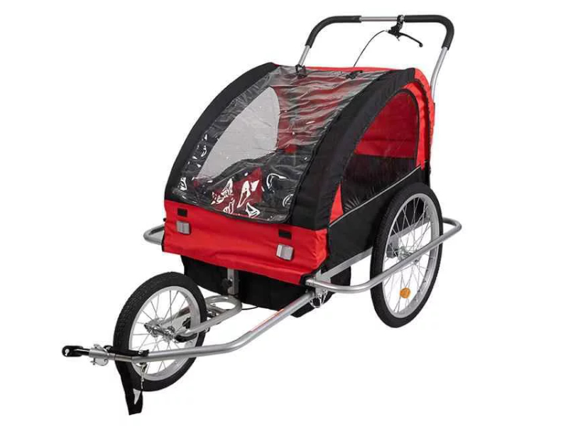 お買い物や送迎などの日常生活から、アウトドアやレジャーなど幅広く活躍!「自転車トレーラー」のご紹介です。自転車でのけん引きと手押しベビーカーの2通りでご利用いただけるこちらの商品。中にはお子さん2人がゆったりと座れます。自転車の前後にチャイルドシートを取り付けたスタイルが一般的ですが、こちらは自転車が倒れてしまっても一緒に倒れることが無いので、お子さんにとってはるかに安全です。雨風も防げ、子育て中のご家庭で活躍違いなしです!