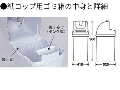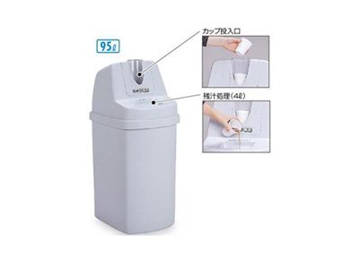 試飲販売や紙コップ専用の自動販売機の横に設置すると便利な紙コップダストボックスのご紹介です。紙コップ専用なので、飲み残しの処理に困っても大丈夫!残汁ボックスが付いており、しかも4Lも回収可能です。さらに、カップ投入口は重ねて捨てられるようになっているので、大量のゴミが出てもたっぷりご使用いただけます。大人数が来場するイベントなどに、ぜひご利用ください!