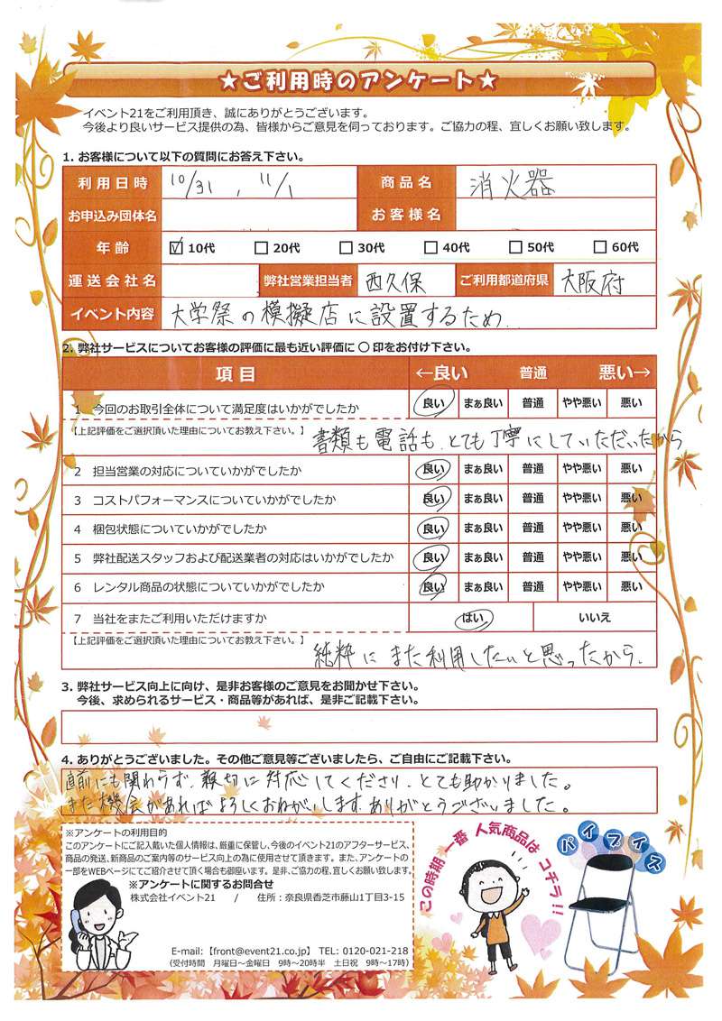 2015年10月にご利用いただいた10代、大阪府のお客様より。