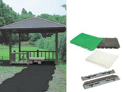 ぬかるんだ会場や地面が整地されていない場所などにお使いいただくと便利な敷板 レンタルのご紹介です。整地されていない場所に敷き詰めて地面の補強や歩く場所の確保などに使われます。芝生の上で使えるタイプもあり芝生への影響を最小限に抑える工夫がなされており水などを通しやすい構造となっているため使用しても安全です。