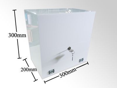 盗難防止の鍵付き募金箱のレンタルのご紹介です。アクリル製の白いケースで高級感あふれる募金箱です。募金箱の他、投票箱やお客様からのご意見箱としてもお使いいただけます。投入口のサイズは幅120×奥行5mm。はがきを入れるのに、ちょうど入るサイズです!誰が誰に投票したのか見えないようにできる大きさです。選挙活動や募金活動にもお役立てください!