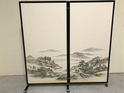 高さ1.8mと2.1mの2種類のサイズと20種類の絵柄から選べる和風の2つ折りパーテーションです!高級な襖に描かれている柄を襖の雰囲気そのままに、キャスター付きのパーテーションに仕立て上げました。簡単に移動できますので、壁際に並べるだけでいつものお部屋が和風の雰囲気に早変わり!自立しますので普通にパーテーションとしてのご利用や、和風コーナーのディスプレイや撮影スポットの背景としてもお使いいただけます!大きいものから小物まで和装用品各種取り扱いがございますので、和風アイテムとの組み合わせで様々な用途に対応いたします!