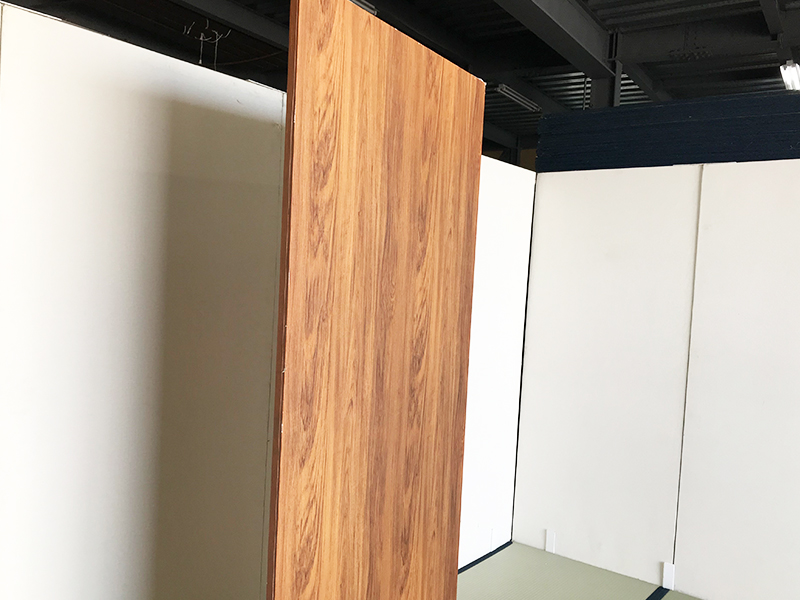 木目調パネルのご紹介です。白系のパネルは明るく清潔感のある色合いをしていますが、こちらは明るさはあるものの、若干落ち着きのある色合いをしています。全体にくっきりと付いている木目の模様がとてもオシャレで、会場を温もり溢れる空間に仕上げると同時に、高級感のある印象も与えてくれます。アンティーク展や宝飾展示会など、幅広い展示イベントにお使い頂ける他、セミナーのブースなどにも最適な商品ですので、それらのイベントをお考えの方は是非ご利用されてみてはいかがでしょうか。