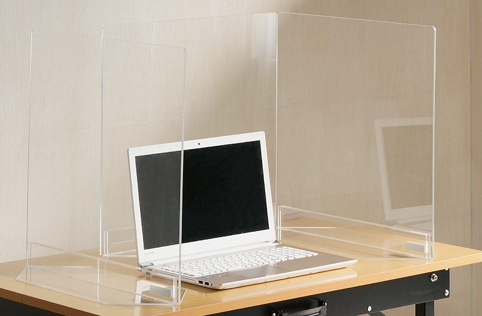 厚みを5mmの板を使うことで極力たわみをなくし、安心感のある作りにいたしました。 - アルコールを直接吹きかけての除菌はアクリル板を痛める原因となります。