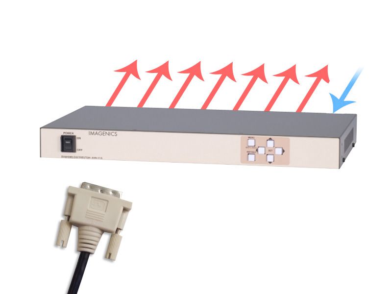 HDMIのデジタルケーブルが主流になりつつありますが、DVI端子でしか出力できない事も多くあります。そんな時には、こちらのDVIハブにお任せください!最大7つのモニターを同時に接続できますので、広い会場でのPRイベント、講演会、セミナー、ライブなど、どの場所からでも、どの方向からでもモニターが見られる会場づくりができ、お客様にも十分満足していただけます。