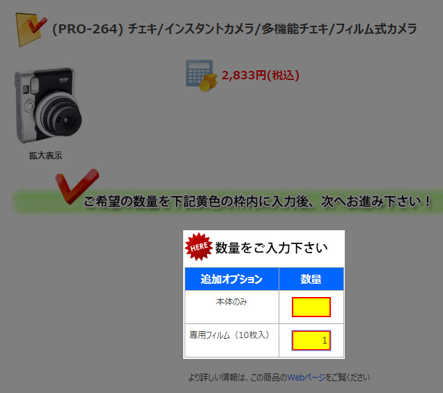 - Q.チェキ用のフィルムはセットにしてもらうことはできますか?