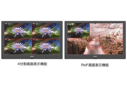 今回ご紹介します「15.6インチ4K解像度モニター」は従来のフルHD液晶パネルに比べ、4倍の解像度を持った高精細液晶での映像表示が可能です。さらに、液晶パネル上で4つのフルHD映像を同時表示させる4分割画面表示機能や、2つの映像を上下または、左右に表示させる2分割画面表示機能、画面の中に小窓表示するPinP画面表示機能を搭載。小型モニターをいくつも並べる煩わしさからも開放されます。また、低重心自立スタンドで角度調節ができ、折り畳んだ状態での仕様も可能です。