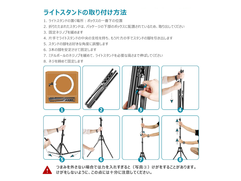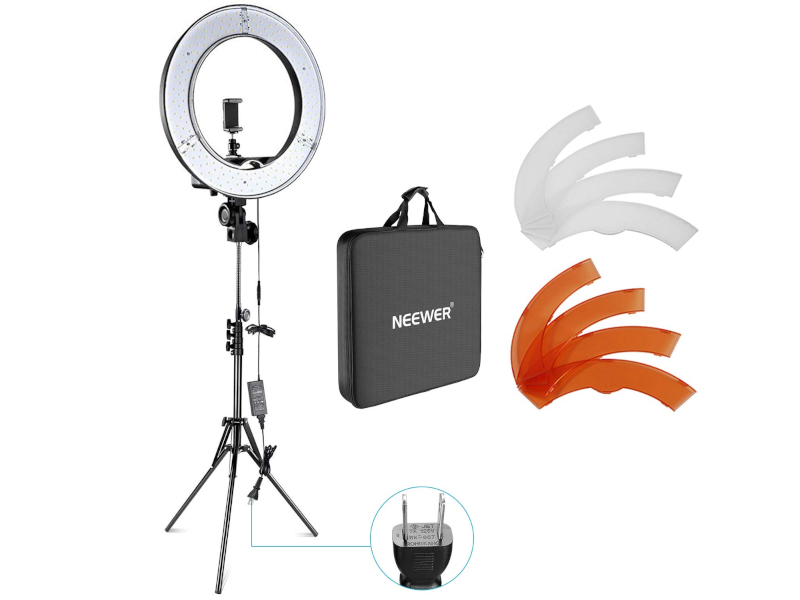| セット内容 | LEDリングライト×1 ライトスタンド×1 ソフトチューブ×1 カラーフィルター(白、オレンジそれぞれ1つずつ) 三脚ヘッドホットシューアダプター×1 スマートフォンホルダー×1 JPプラグ付き充電器×1 キャリングバッグ×1 |