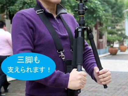 カメラ用一脚&三脚ホルダーのご紹介です。こちらは、その名の通り一脚や三脚を固定した状態を保ちながら撮影が行えます。使い方は、一脚の場合はそのまま、三脚の場合は2本の脚を両手で持って撮影します。ホルダーは首に掛けたり、腰ベルトに通してお使い頂るので、長時間にわたる撮影時にも安心です!また、単なる持ち運び用の 収納用としてもお使い頂けます。スポーツやアウトドア、旅行先で一脚や三脚を使用して撮影をする際は、是非こちらのカメラ用一脚&三脚ホルダーをお役立て下さい。