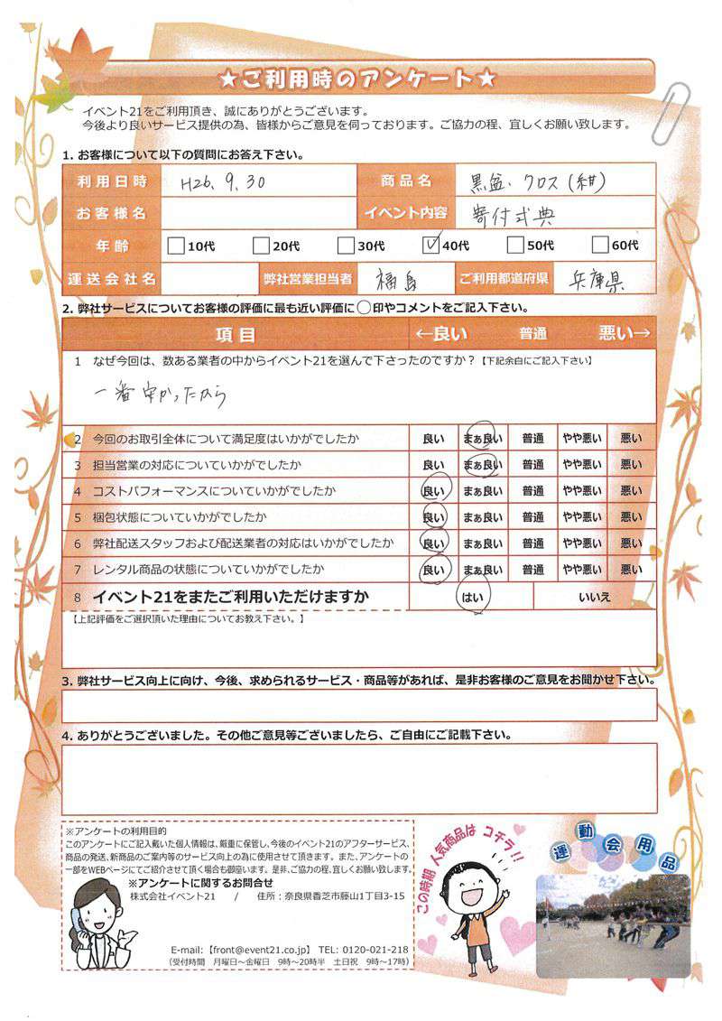 2014年9月にご利用いただいた40代、兵庫県のお客様より。