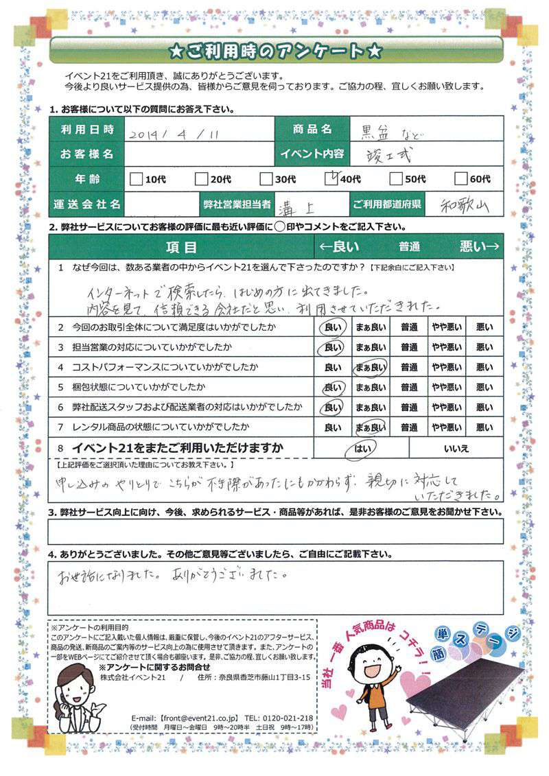 2014年4月にご利用いただいた40代、和歌山県のお客様より。