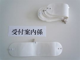 スタッフ用腕章レンタルのご紹介です。催し物をスムーズに進行させる役目のあるスタッフ様用の腕章です。どのような役割かを表示する部分は係の名称を記載した用紙を取り替えるだけで、お好きなようにお使いいただけます。イベントにいらっしゃるお客様にも、どなたがスタッフなのかすぐわかりますのでとても便利です。