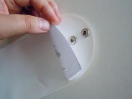 腕側に用紙の入り口がありますので、そこに差し込みます。腕章は安全ピンやクリップで留めます。