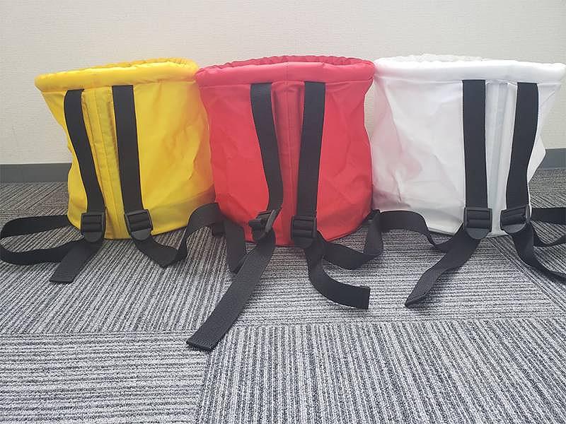 通常の立たせるだけの玉入れカゴとは違い、こちらは人が背負う仕様です。人が背負う事で、いつもの玉入れとはちょっと違った遊び方ができます。例えば、逃げ回る相手チームの背負ったかごにより多く入れた方が勝ち、玉拾い競争、距離をとって見事かごに入れば成功!など、遊び方の幅が広がります。いつもと少し違った玉入れをとお考えでしたら、是非弊社までご相談ください!