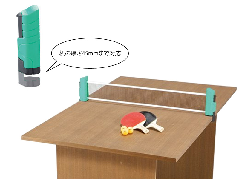 いつでもどこでも手軽に卓球が楽しめる!「ポータブル卓球セット」のご紹介です。今や大人気のスポーツである卓球を、ご自宅のテーブルやちゃぶ台に簡単に設置できるこちらの商品。ネットはロール式なので、お好きな幅に調節することが可能です。収納ケース付きで、携帯性も抜群!ホームパーティーや宴会に是非いかがでしょうか!
