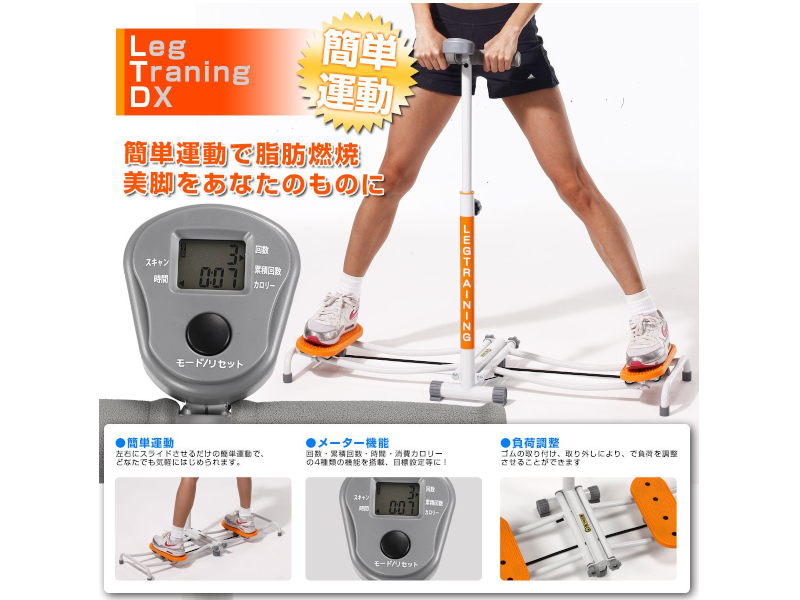 足を左右にスライドして美脚をゲット!「美脚マシン」のご紹介です。ミニスカートや短パンを履きたいけれど、自分の足が好きじゃない!ダイエットしても足はなかなか痩せない!という方に是非お勧めしたいこちらの商品。普段の生活では、なかなか使う事のない筋肉を使うので、鍛えにくい太もも、内もも、ヒップライン部分に直接効果があります。バンドで負荷調節ができますので、無理のないところから始めてみてくださいね!ご利用お待ちしております!