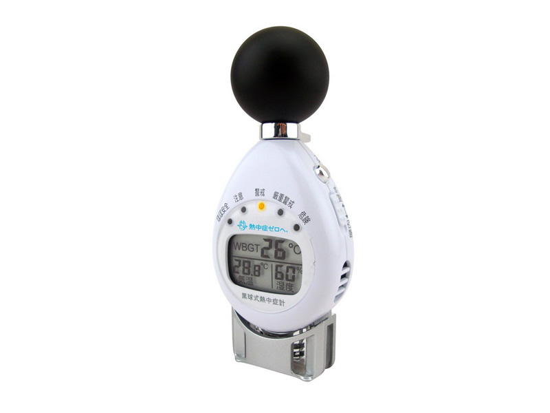 熱中症予防、健康管理に!「熱中症指標計」のご利用はいかがでしょうか!セミの鳴く声が聞こえてくると、いよいよ夏本番。年々、その時期も早く、気温も高くなり、私達は熱中症というワードをよく耳にするようになります。こちらの商品は、単純に気温と湿度だけで判断するのではなく、放射熱や気流までを総合的に考慮し、熱中症の危険度をを5段階で表示。世界共通の暑さ指数(WBGT)が表示基準となっています。屋外、屋内のスイッチがあり、その場の環境に応じた計測が可能です。10分おきに自動計測を繰り返すので、気温や湿度などの変化を見逃しません。しっかり状況を把握し、イベントを成功させましょう!