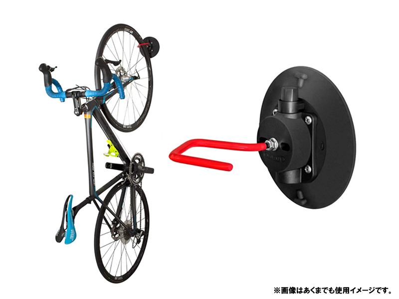 全く新しいタイプの自転車スタンド、「自転車用壁掛けフック」のご紹介です! こちらの自転車スタンドは従来の物と違い、壁に吸盤でくっつけるタイプの物となっております。 壁にかける条件としては、重量は15sまで、平面な壁という至極シンプルな条件のみとなっており、商品自体はとてもコンパクトで携帯にも便利なものとなっております。 先述した通り壁に吸盤で貼り付けるだけなので、壁に穴をあけなくていいのは大きな特徴となります。 イベントなどでも、ディスプレイスタンドとしても活躍が見込めますので、多種にわたって活躍できる商品です!