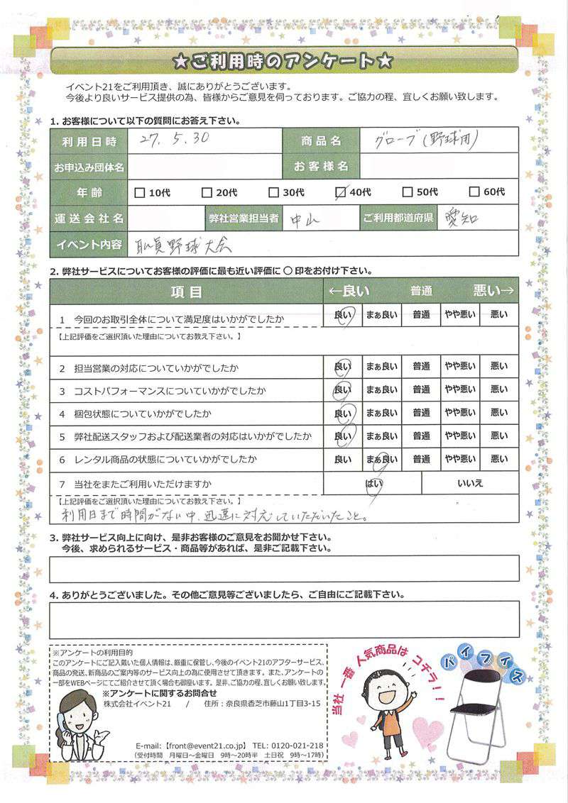 2015年5月にご利用いただいた40代、愛知県のお客様より。