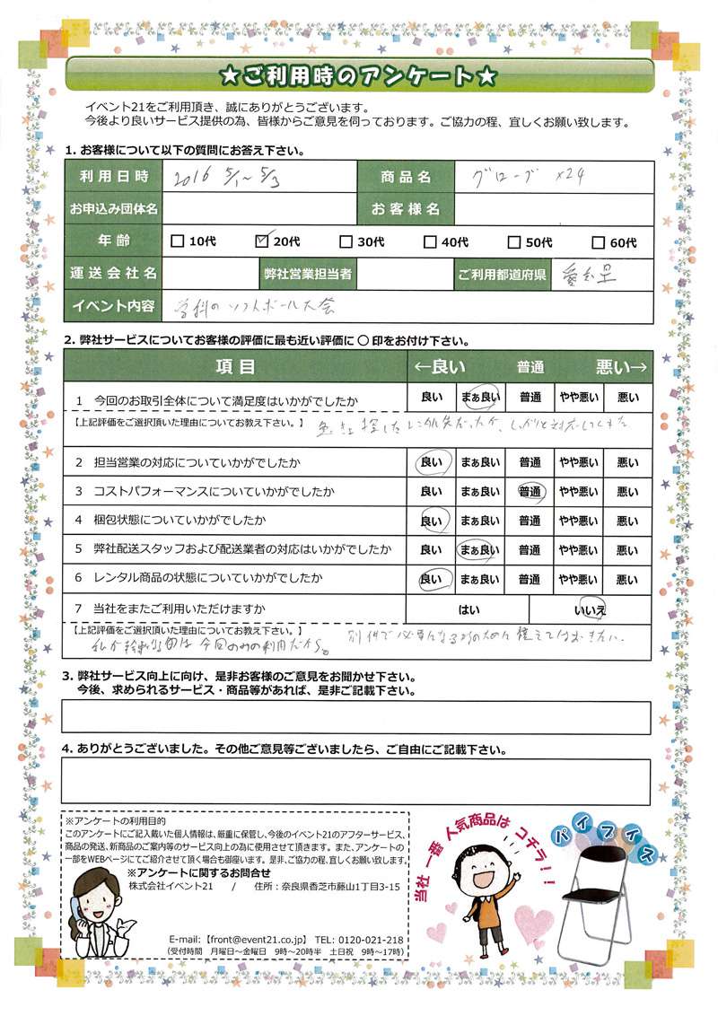 2016年5月にご利用いただいた20代、愛知県のお客様より。