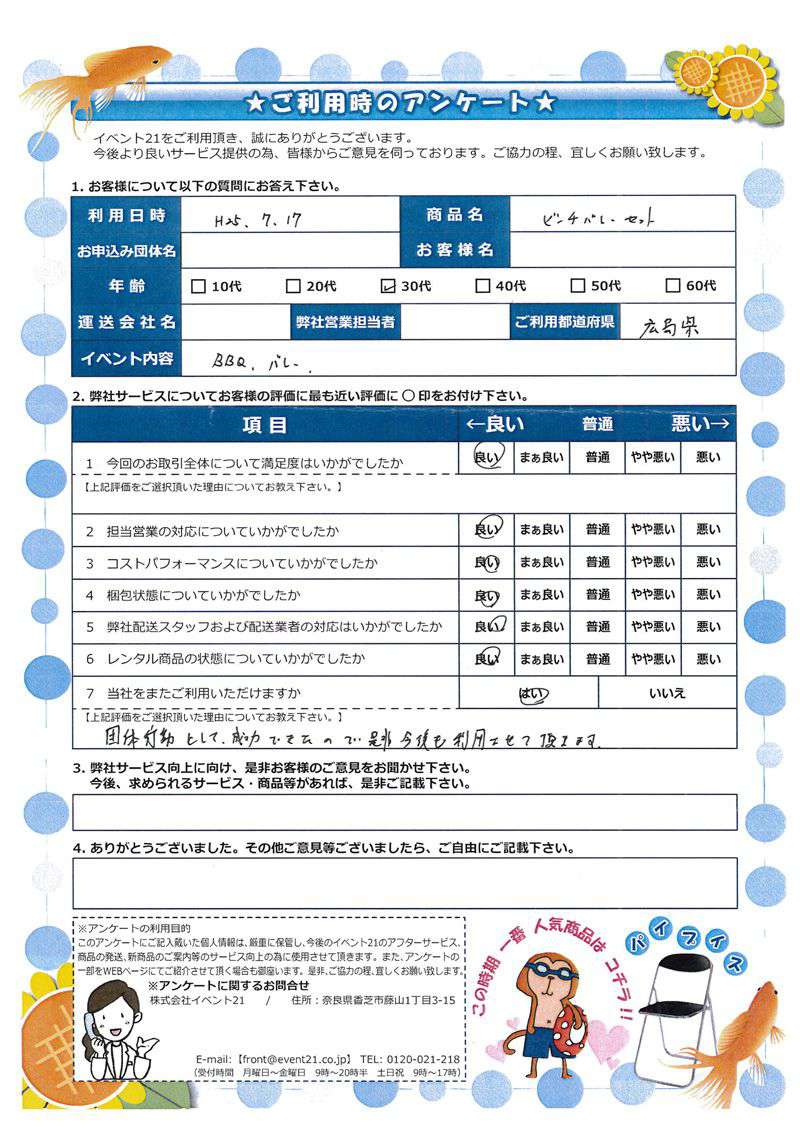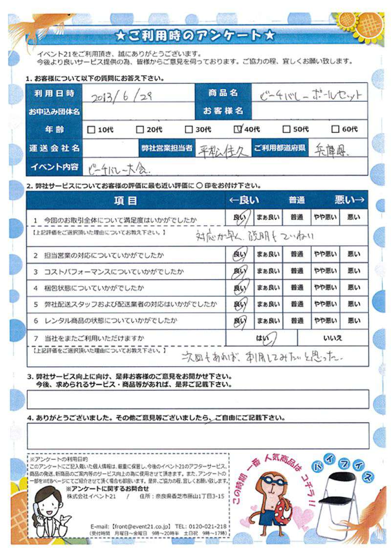 この度も弊社をご利用いただきありがとうございました。今後とも長いお付き合いをしていけたら嬉しく思います。今度ともイベント21をどうぞ宜しくお願い致します。
