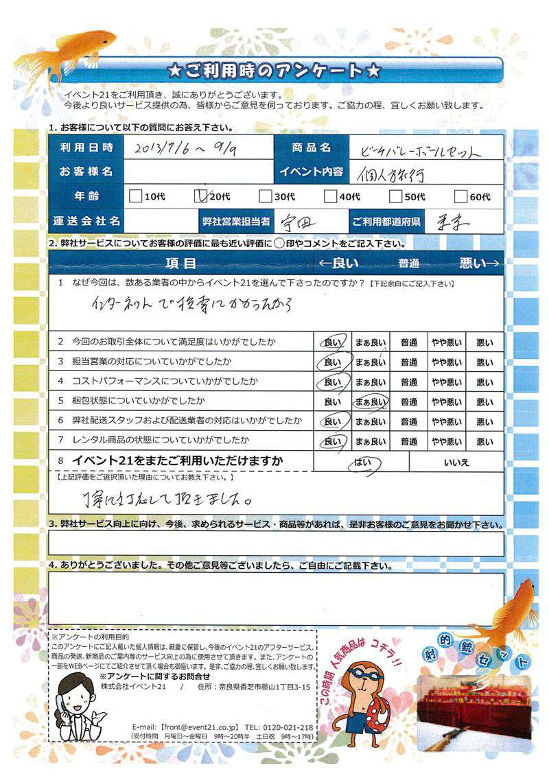 2013年6月にご利用いただいた40代兵庫県のお客様より