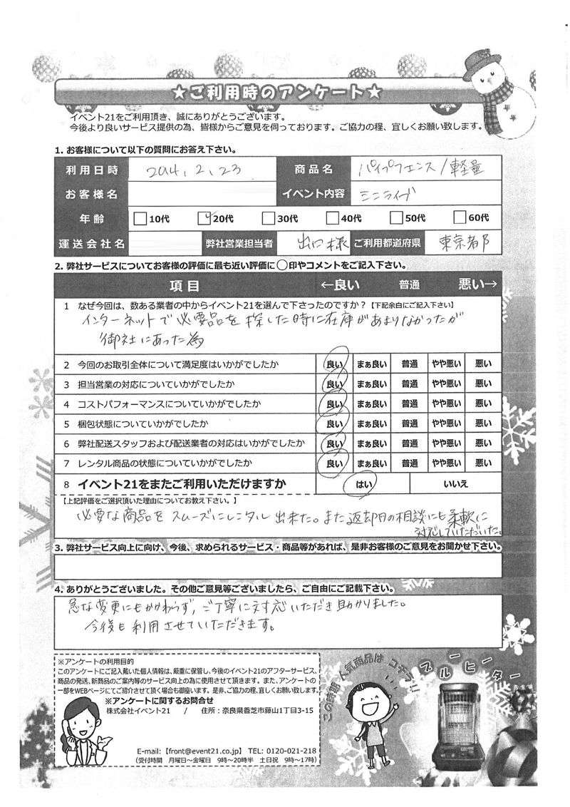 必要な商品をスムーズにレンタル出来た。また返却日の相談にも柔軟に対応していただいた。